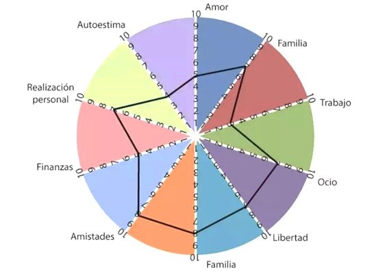 La rueda de la vida es una herramienta visual que nos facilita una visión gráfica de los aspectos que componen nuestra vida y el grado de satisfacción y equilibrio respecto a ellos. Esta técnica nos ayuda a analizar las diversas áreas de nuestra vida, favorece una visión de los aspectos que debemos trabajar y mejorar para alcanzar una mayor satisfacción. Además promueve la motivación, ya que nos ayuda en el establecimiento de objetivos y planificación.
